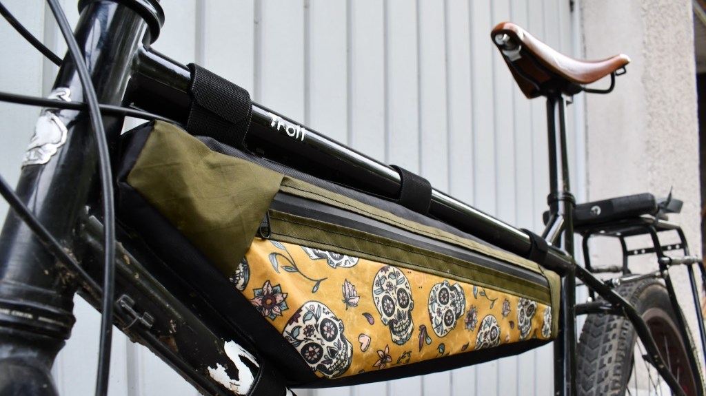 Vu la diversité des tailles et des géométries des vélos, je propose en séries « universelles » uniquement une sacoche de cadre partielle: l’Alpha Bag, en trois tailles, S, M et L. Pour les sacoches intégrales ou les géométries moins courantes, rendez-vous dans le coin sur mesure!