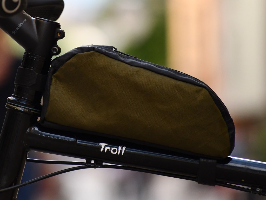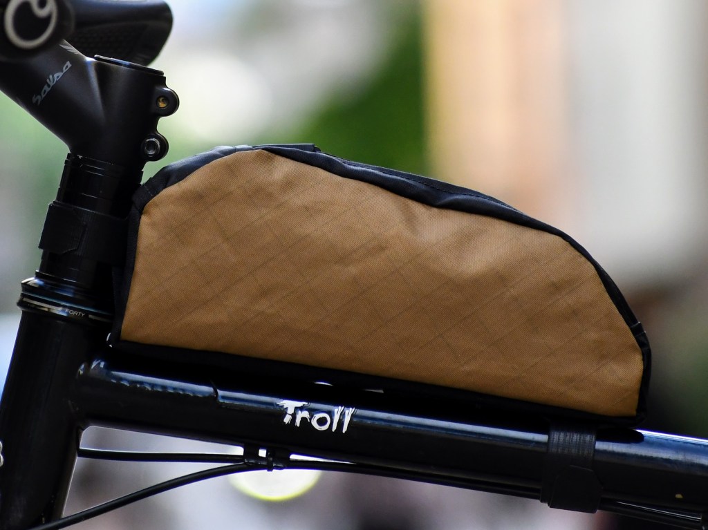 Pour cette petite sacoche toute simple, j’ai cherché à trouver un équilibre entre un volume utile, un encombrement minimal, et un profil épuré et élégant. Plus large et plus haute à l’avant, elle est fuselée en largeur et en hauteur vers l’arrière afin de minimiser frottement avec les jambes, même en danseuse.